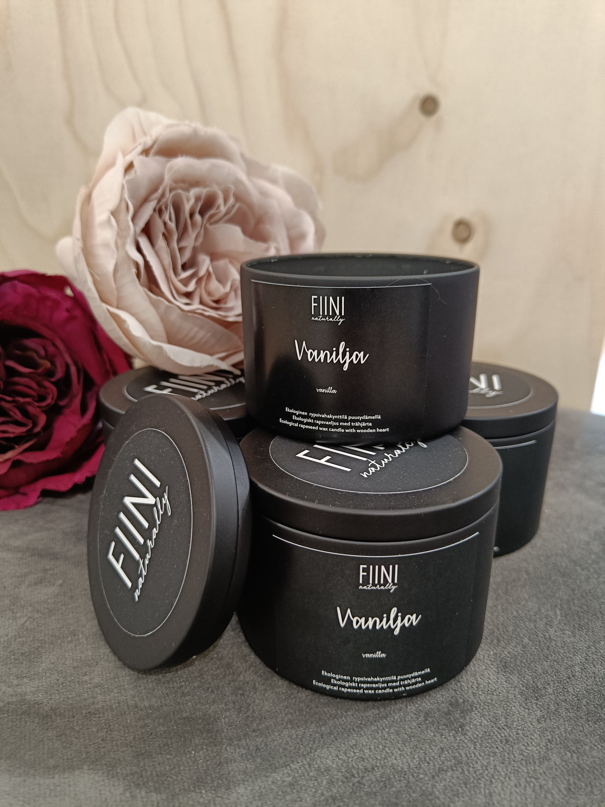 Suomessa valmistettu ekologinen rypsivahakynttilä puusydämellä, tuoksuna ihanan pehmeä vanilja. Tunnelmointiin itselle tai lahjaksi!