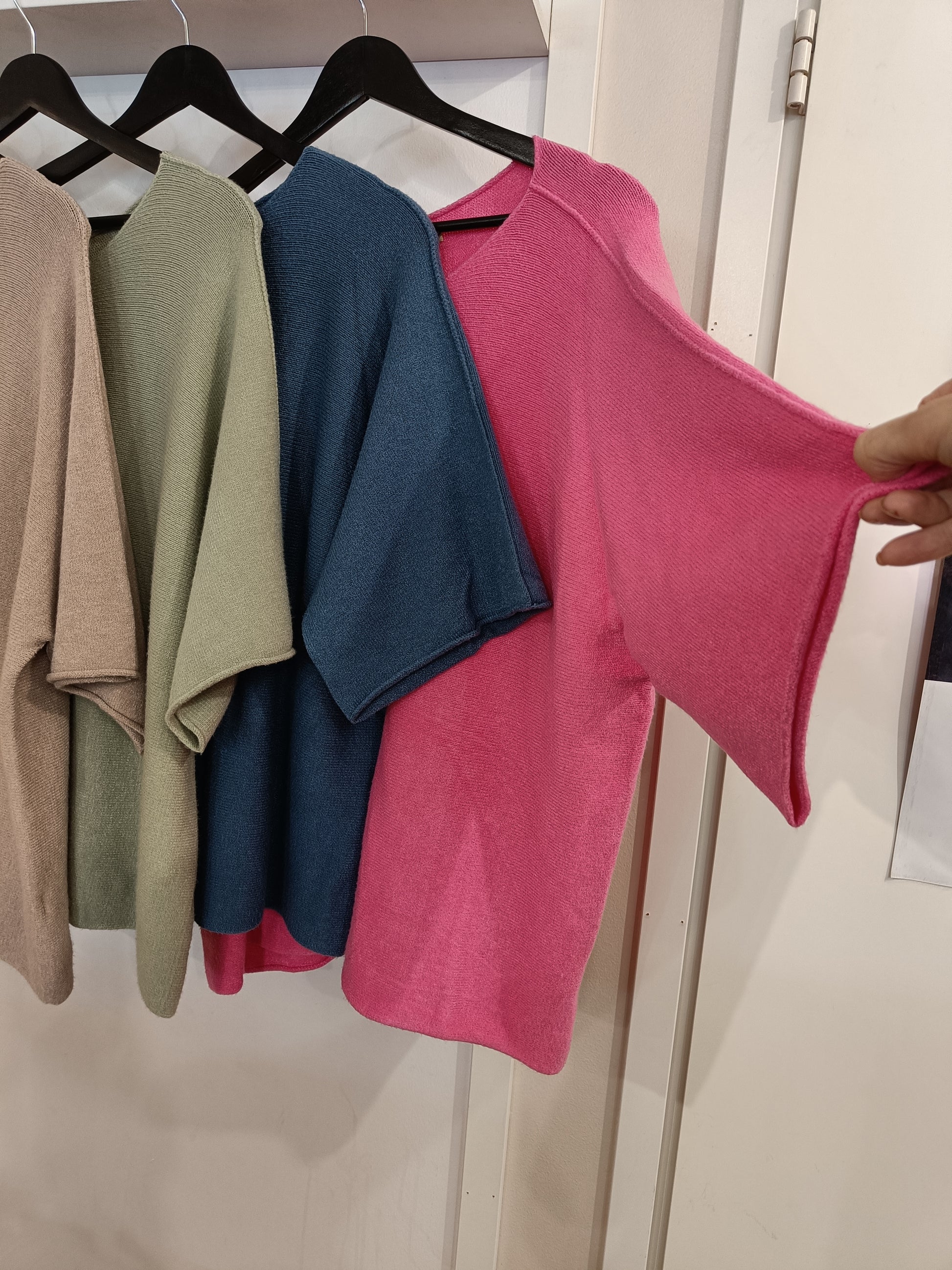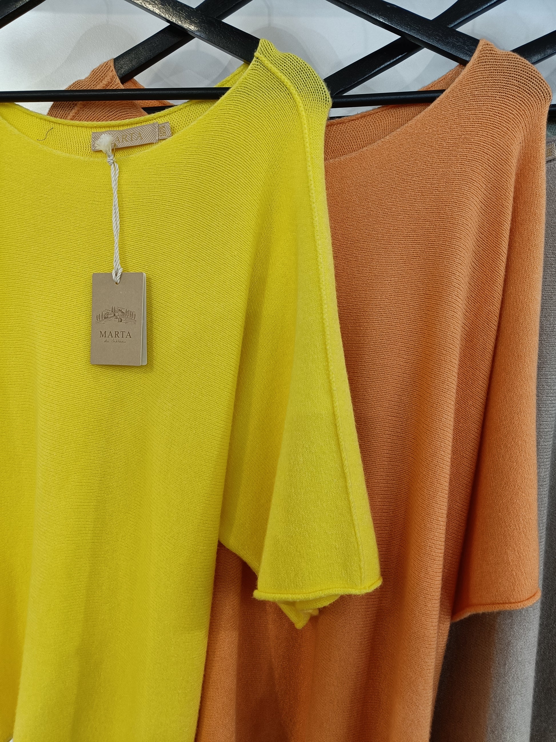 Marta Du Chateaun yhdenkoon neule, vajaamittaisella/lyhyellä hihalla. 51% viskoosi, 25% pbt, 24% nylon.