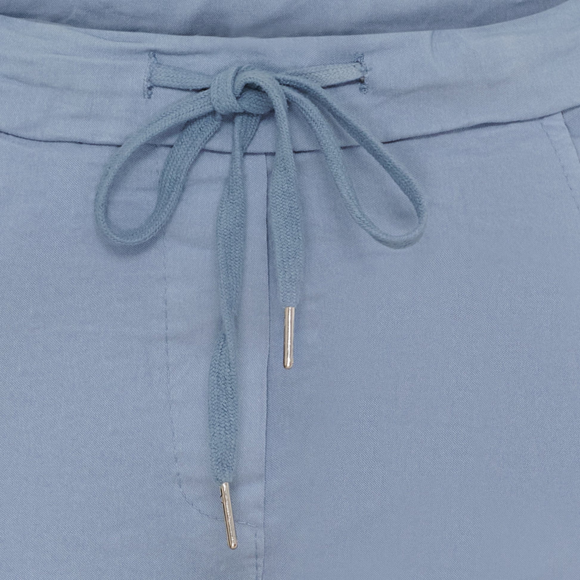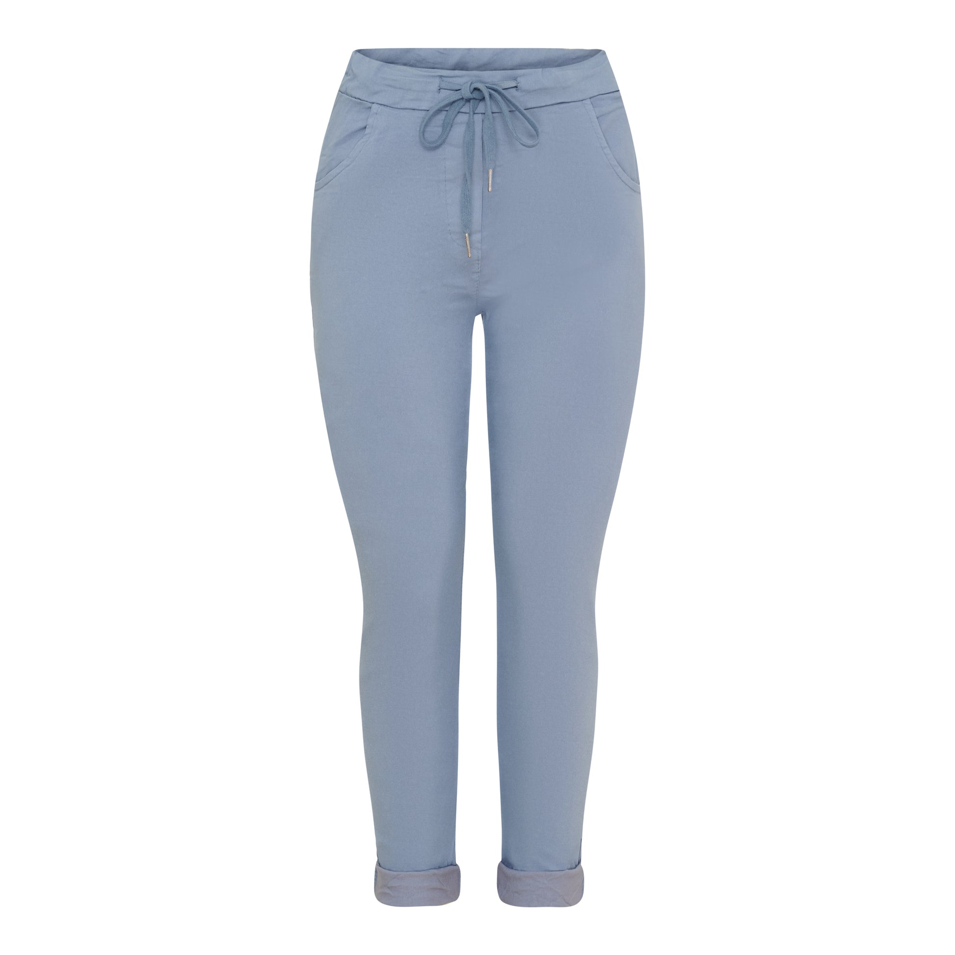 Kaunis vaaleansininen joustohousu Martalta. Koot S/M & L/XL. Lahkeen sisämitta(lahje kääntämättä ylös!) n. 68cm.