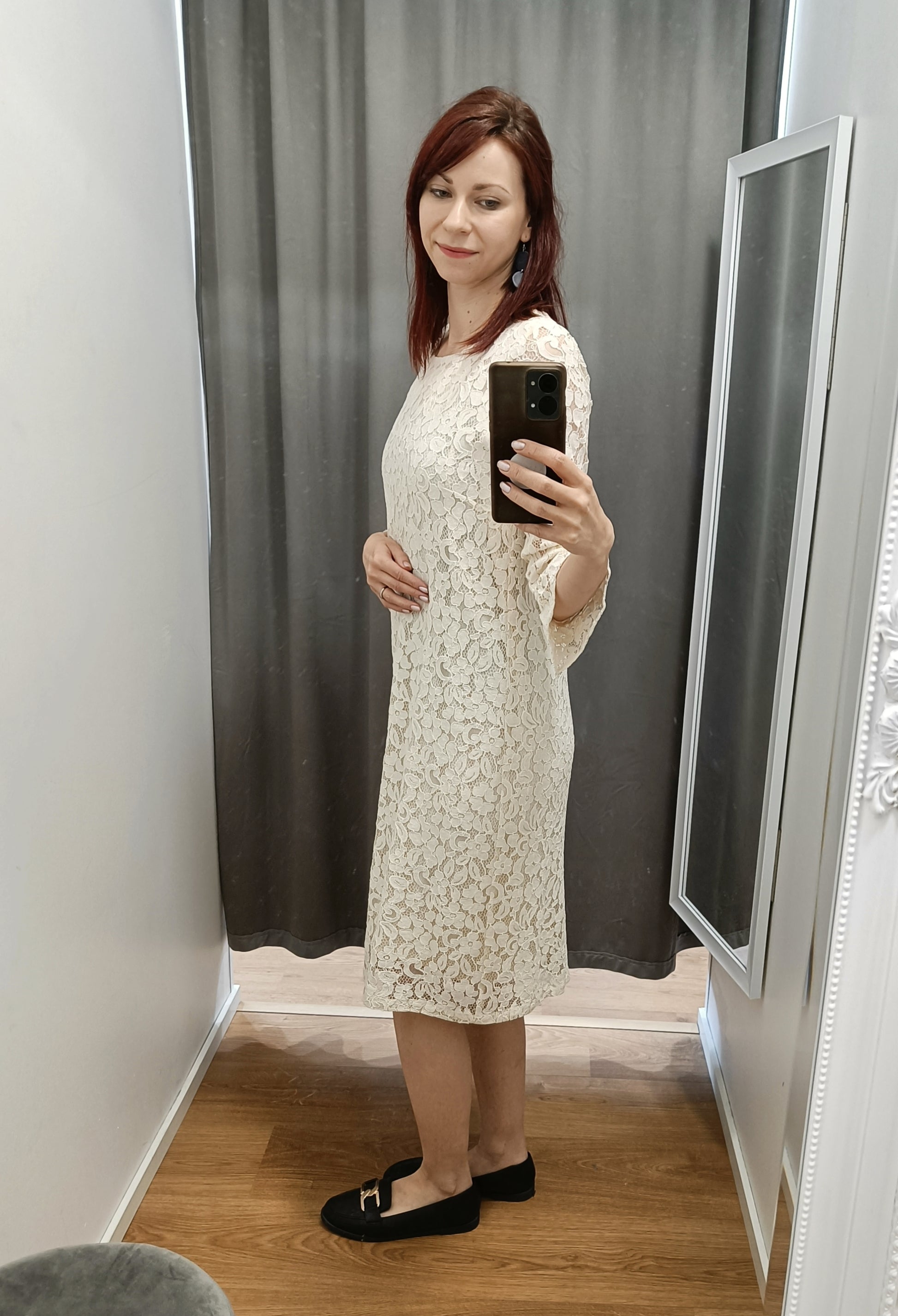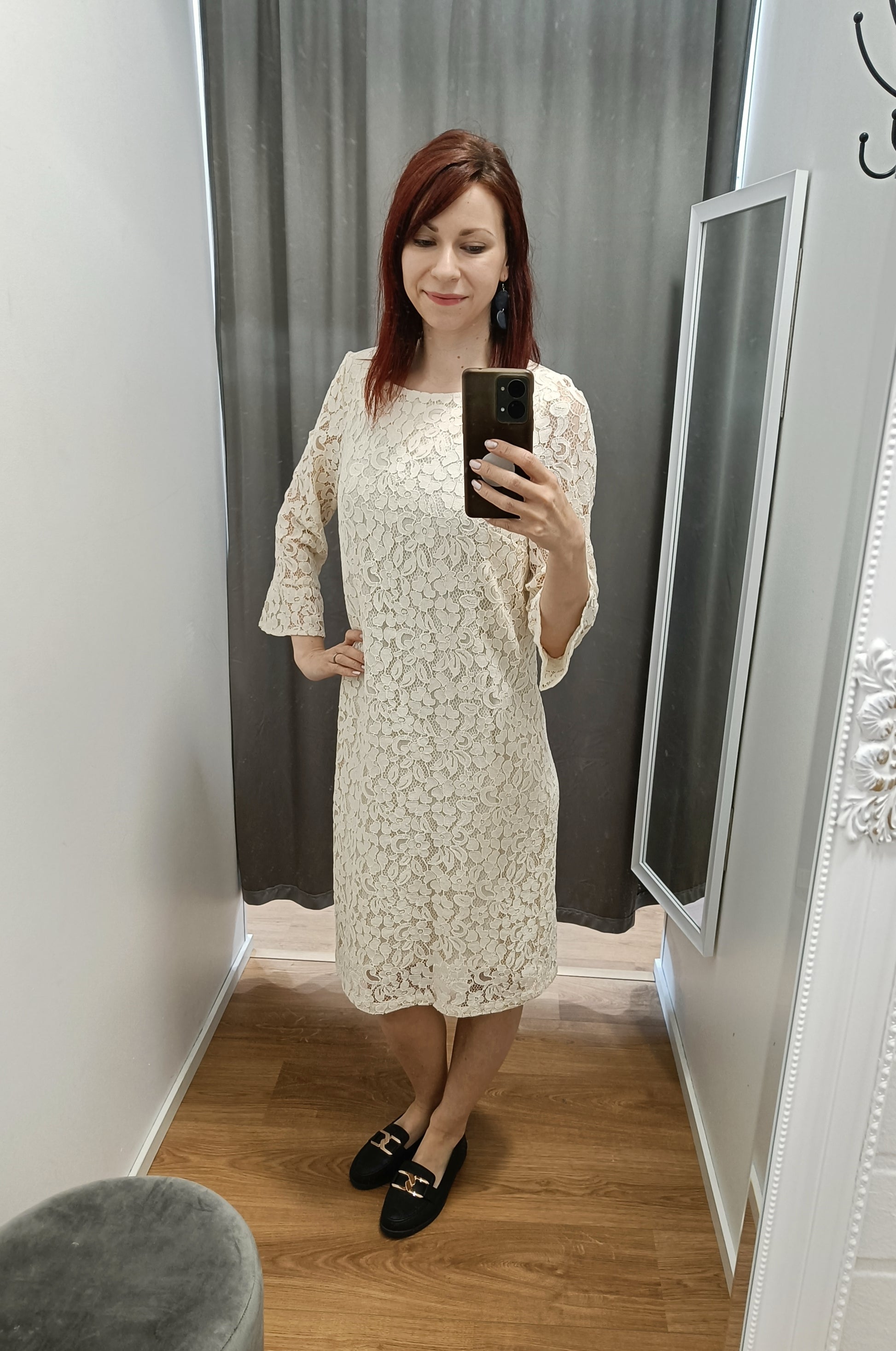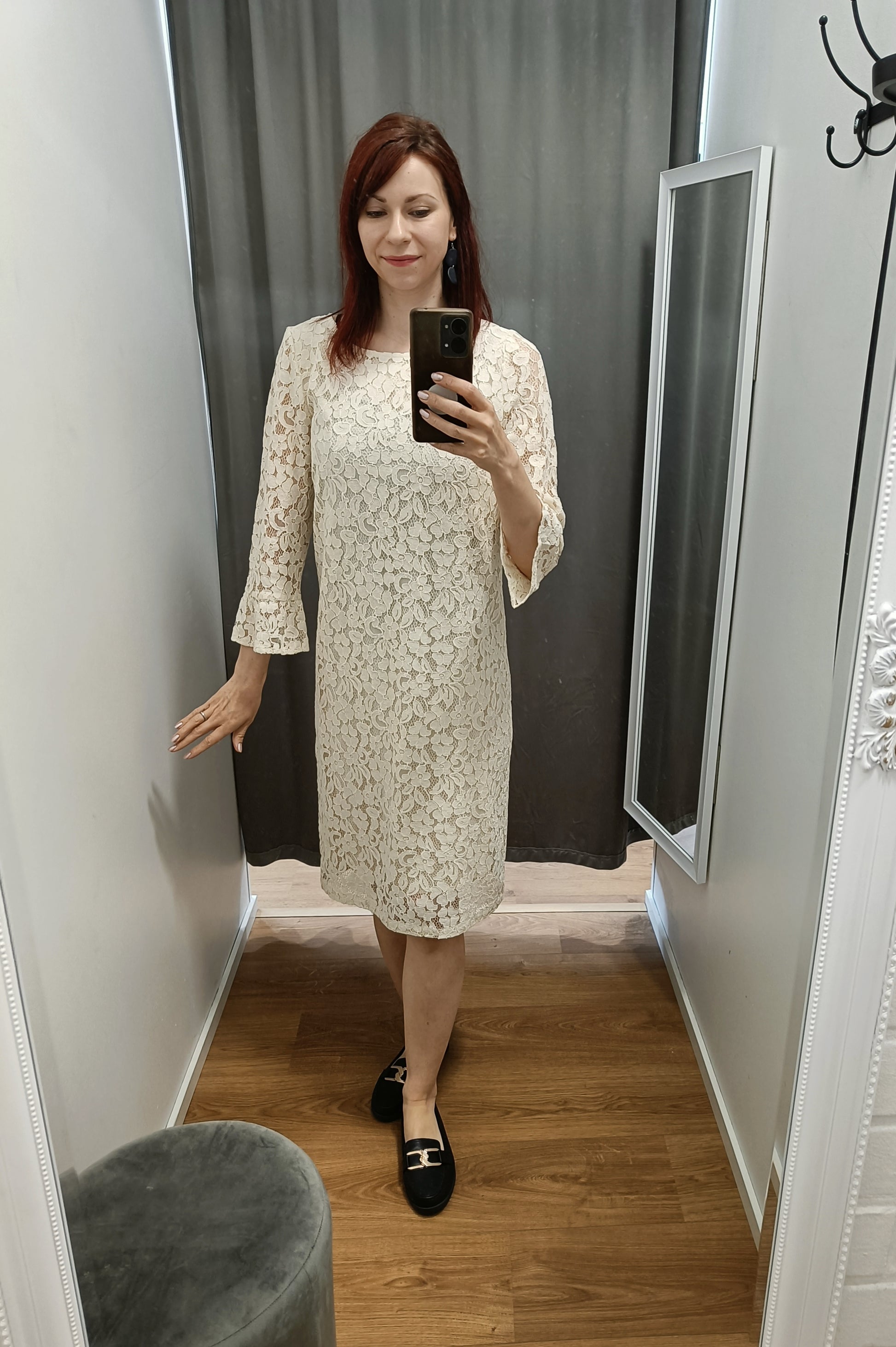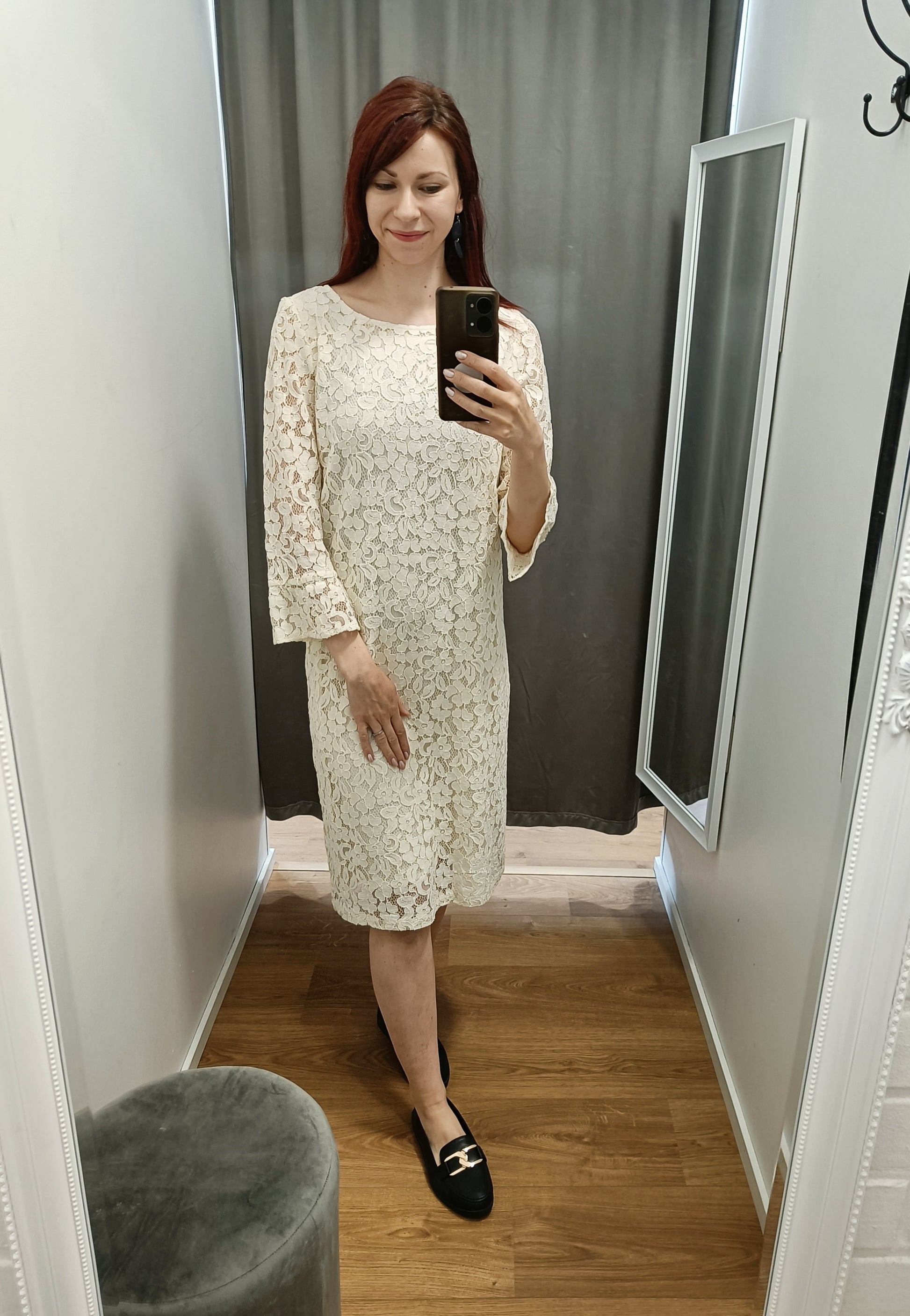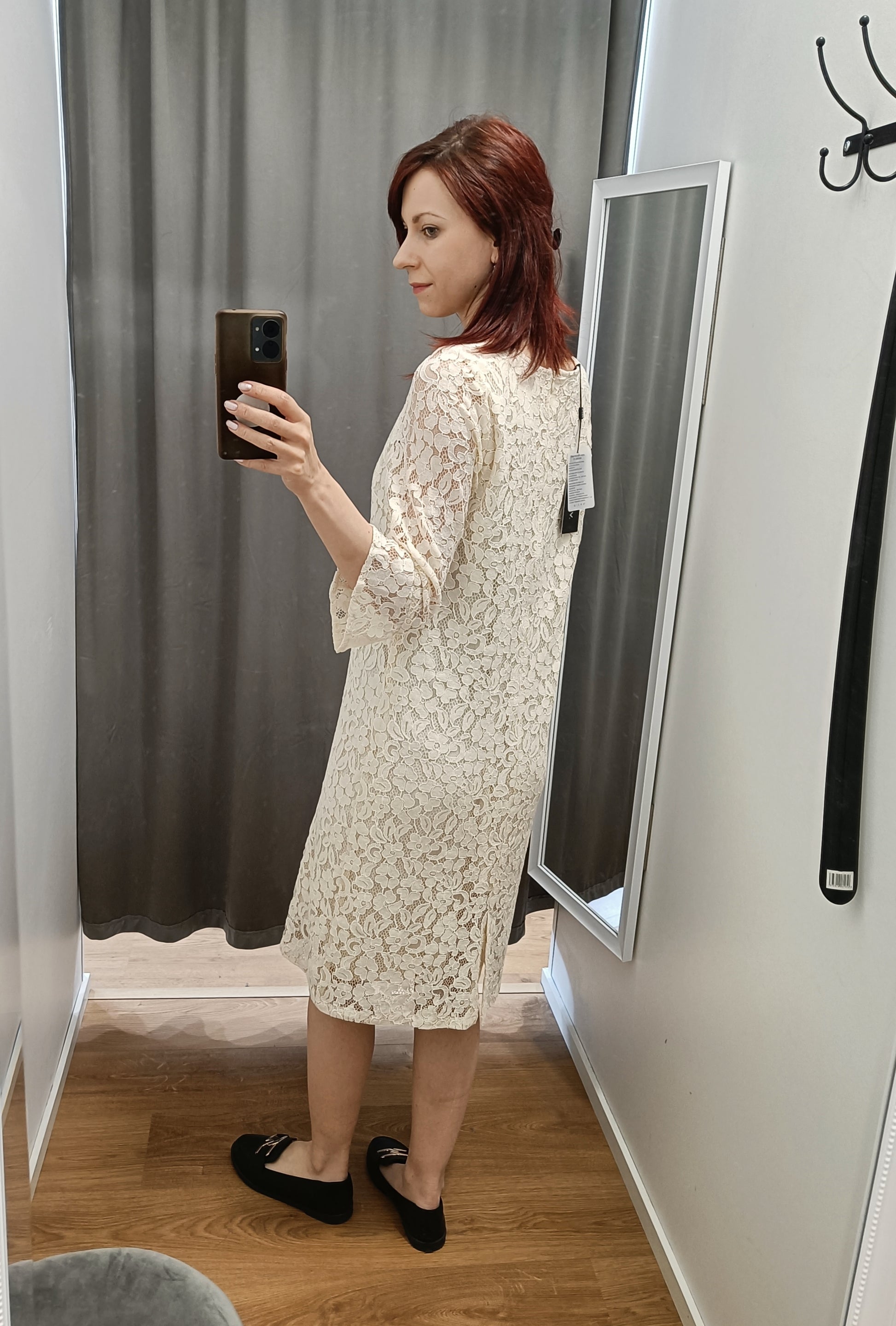Upea kermanvaalea Michan pitsimekko. Kauniin mallinen vajaamittainen hiha. Kuvan malli 165cm pitkä. Shell 30% polyamidi, 45% puuvilla, 25% viskoosi Lining 100% viskoosi. Kangas joustaa hiukan, kai-kai mitat venyttämättä.