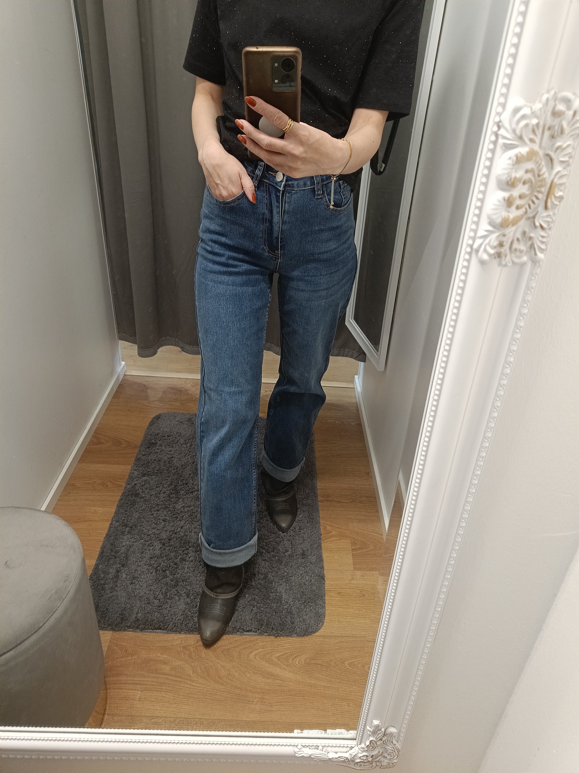 98% puuvilla, 2% elastaani. Valmistettu Kiinassa. Lahkeen sisäpituus n. 79cm.