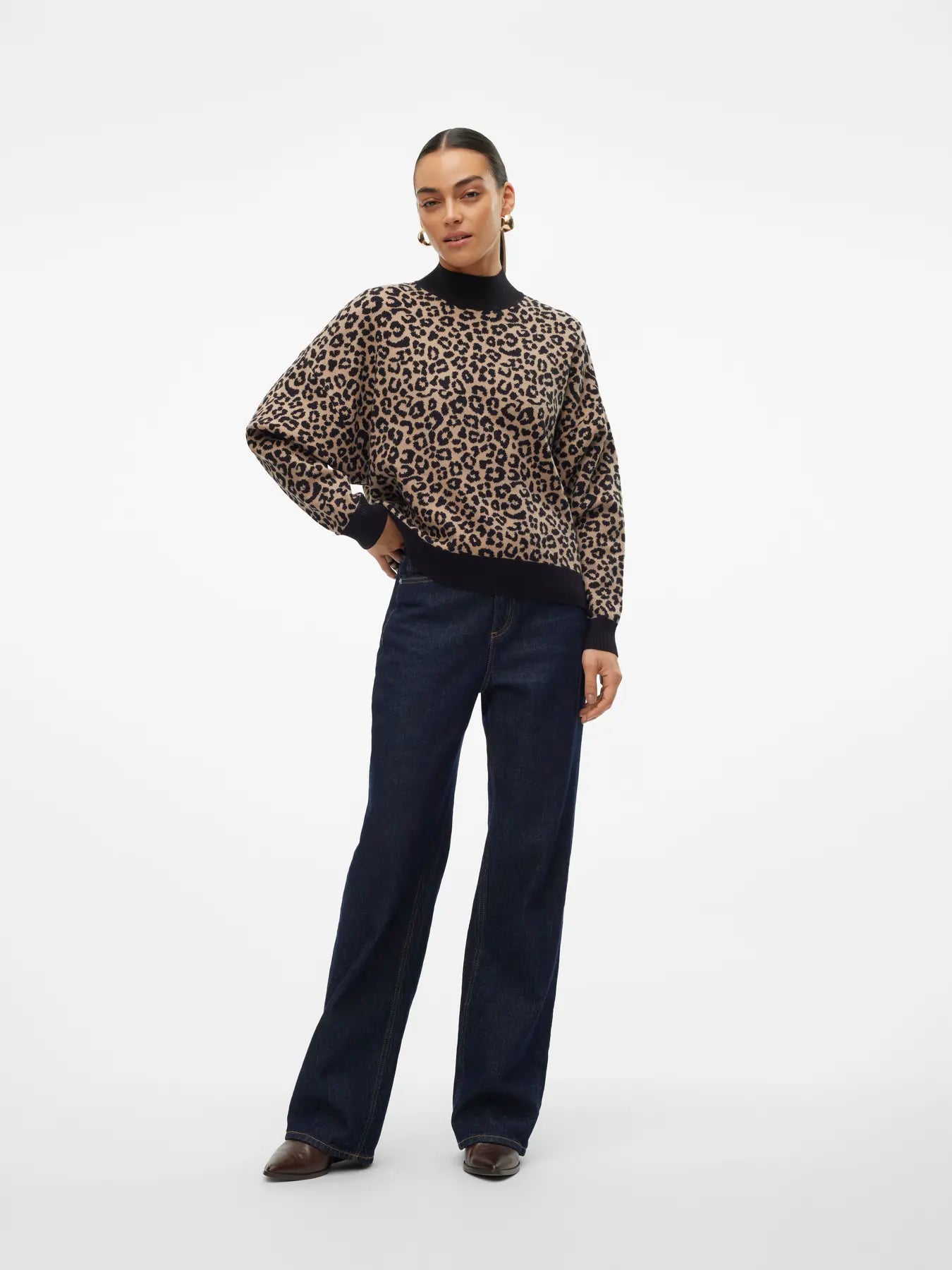 Batwing-neulepusero korkealla kauluksella trendikkäässä leopardikuosissa!