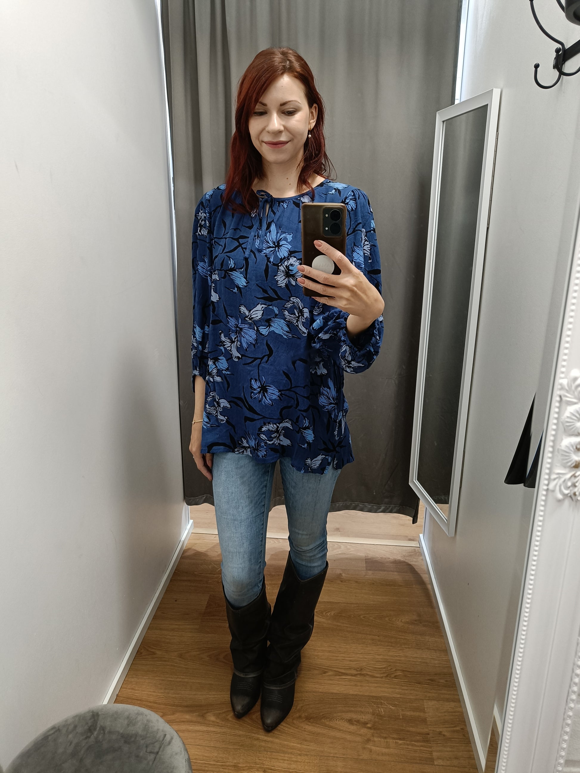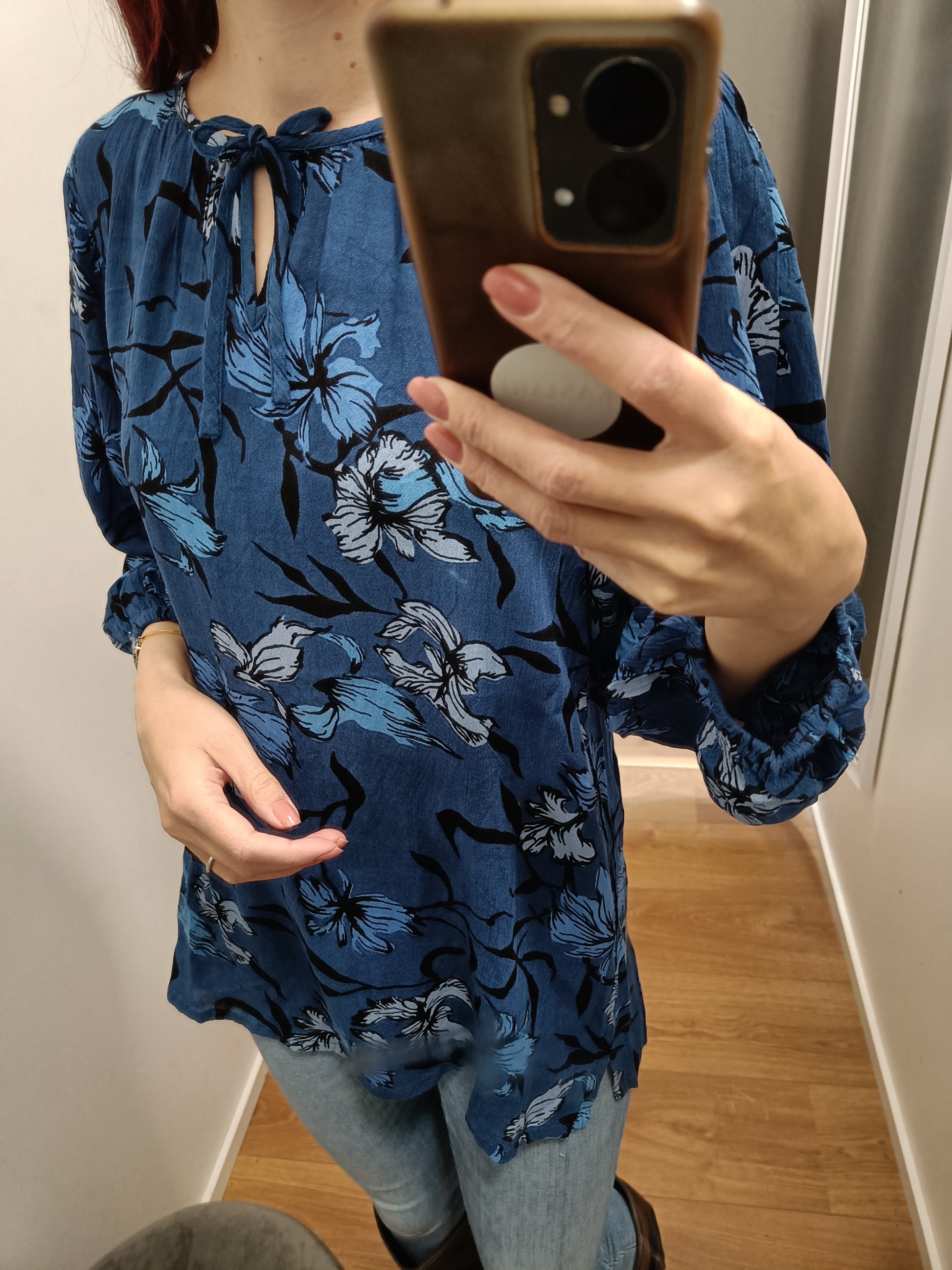 100% viskoosipusero sinisävyssä Ze-Zeltä! Pidempi malli, peittää takapuolen (mallilla mittaa 165cm).