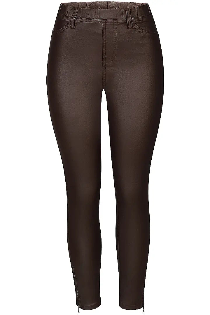 Dixie coutattu housu värissä Chocolade, haara-lahje n. 72cm. Vetoketjut lahkeissa kivana yksityiskohtana! Vyölenkit, kuminauhavyötärö ja valetaskut edessä, oikeat takataskut.
