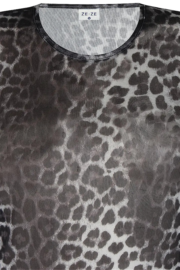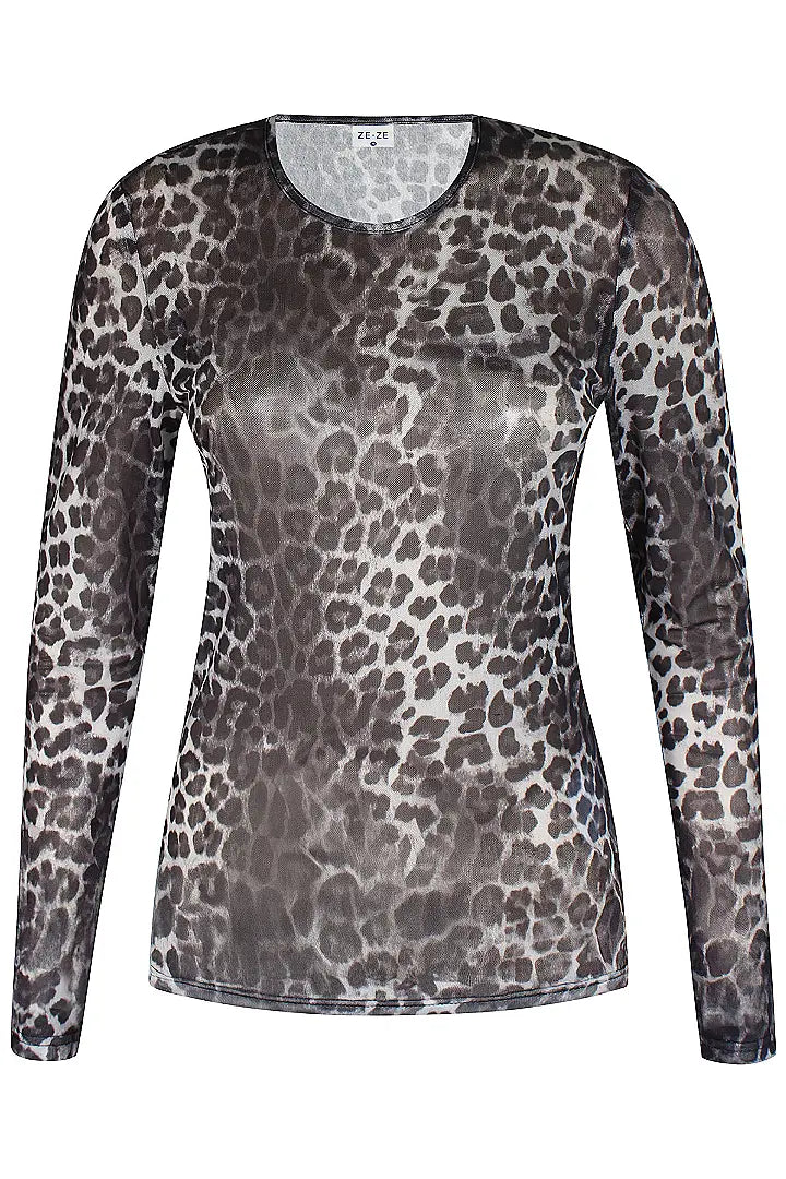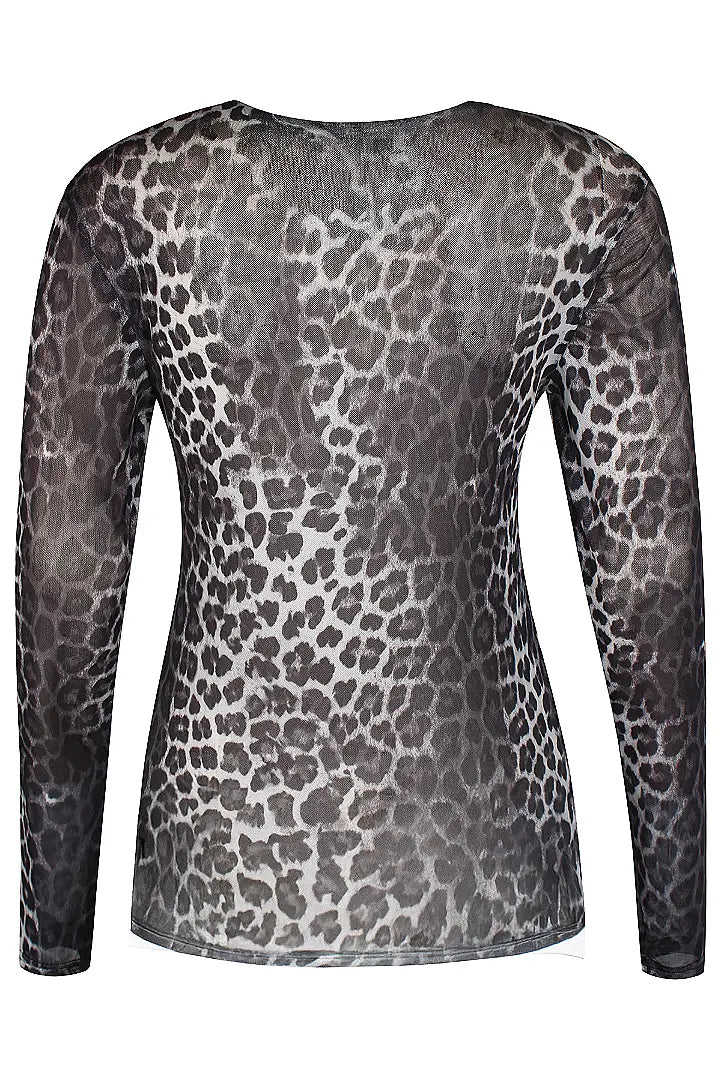 Upea harmaansävyinen leopardikuosinen mesh-pusero! Läpikuultava. Pue alle vain rintaliivit, tai jos haluat peittävämpää, laita alle tai päälle toppi tai t-paita! Upea esim. bleiserin tai neuleliivin tms. kanssa! 95% polyester 5% elastaani.