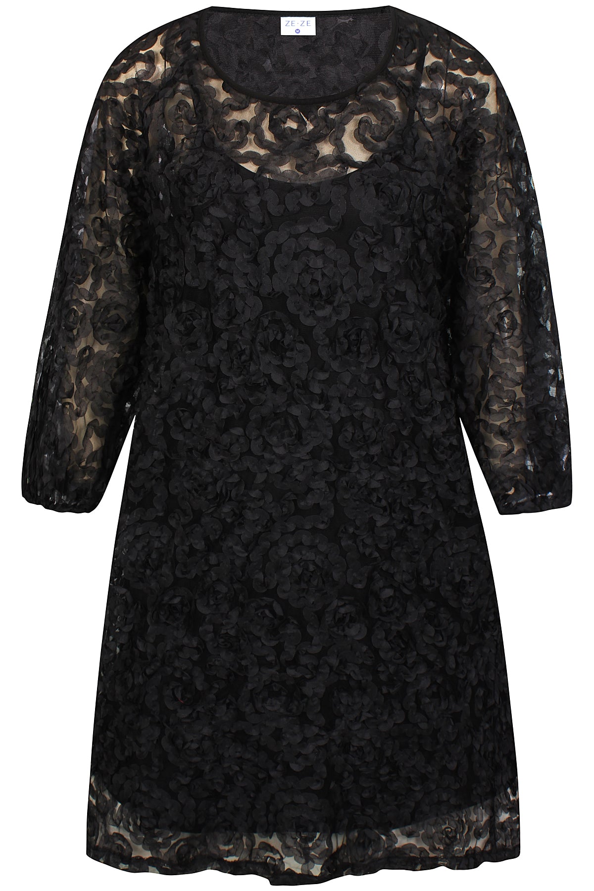 Upea lyhyen mallinen "ruusumekko" Ze-Zeltä! Sisältää erillisen alusmekon. Huom! Vyö ei sisälly. Main fabric polyamide 70%, polyester 30% Lining viscose 100%