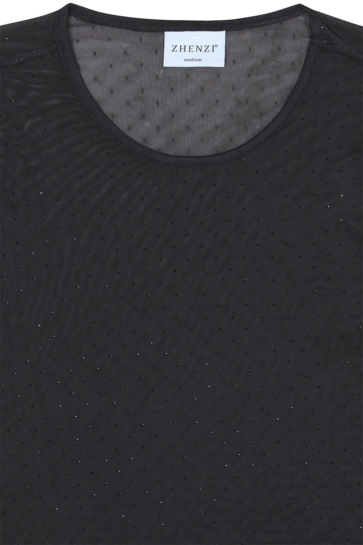 Upea mesh-pusero mustilla kauniisti kimaltelevilla "timanteilla" plus-koossa! Pusero täysin lämpinäkyvä, mallilla kuvissa toppi alla. 95% polyester, 5% elastan. Valmistusmaa Kiina.
