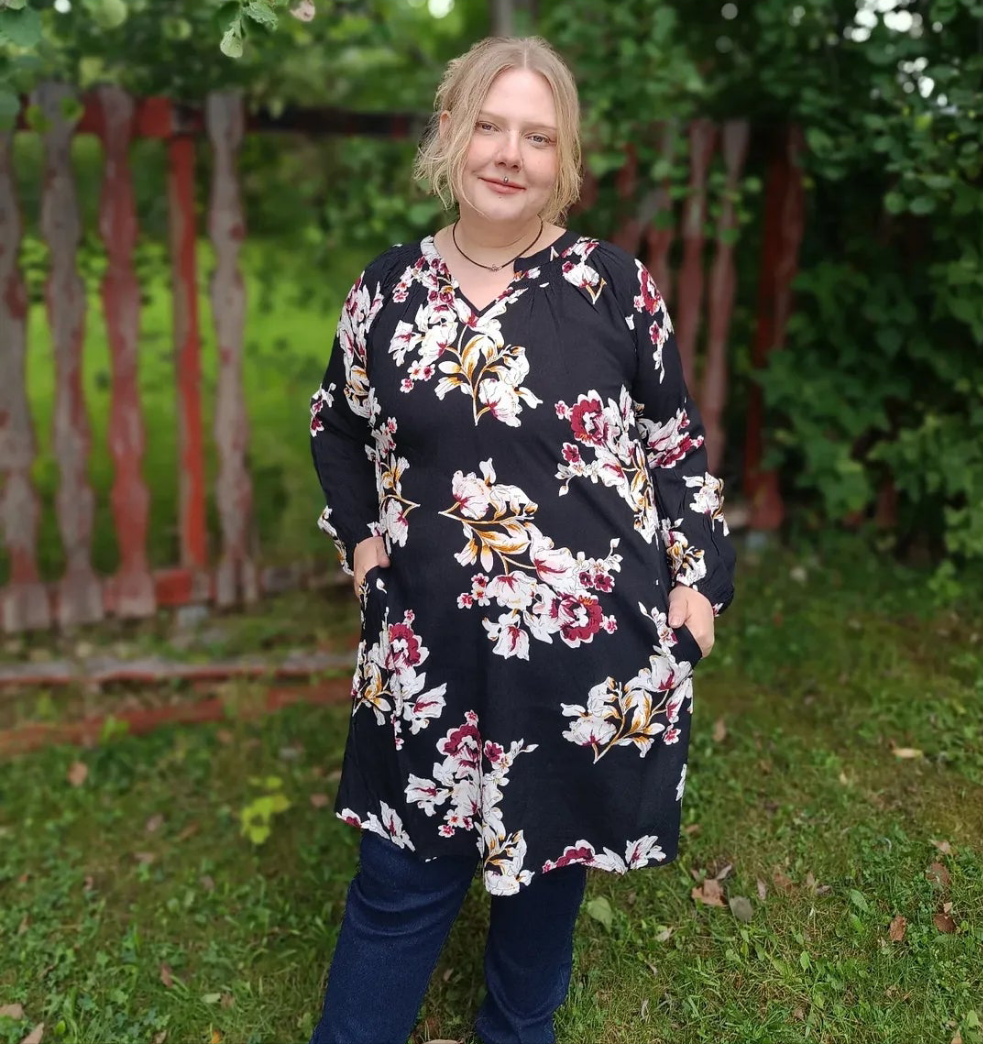 Kaunis 100% viskoositunika Zhenziltä. Pohjaväri musta. Taskut!