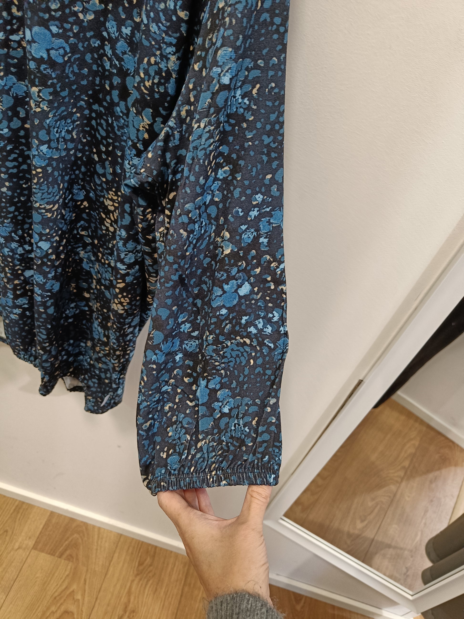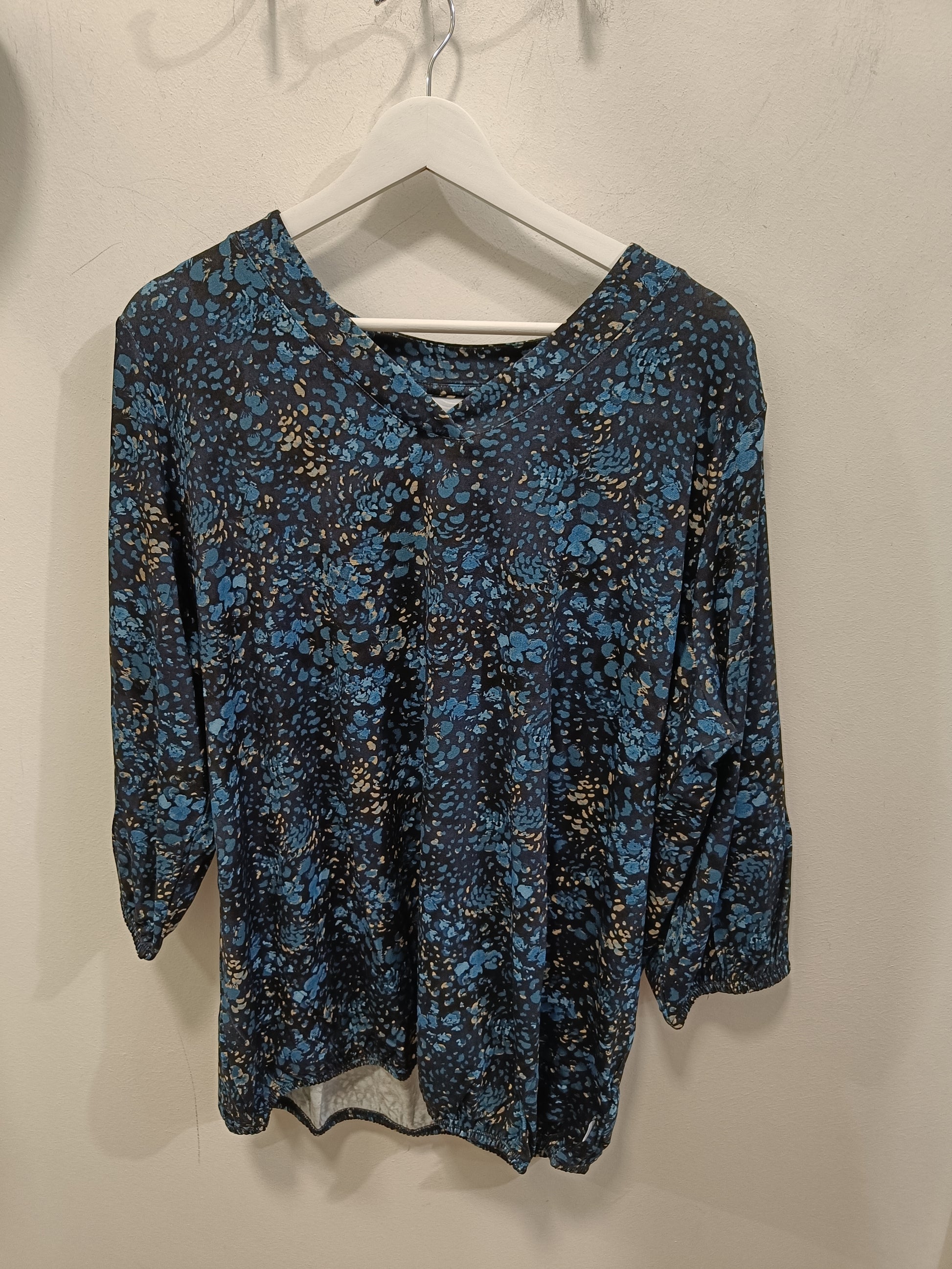 Tässä plus-mitoitetussa Sylva-puserossa on 3/4 hihat ja kuminauha helmassa & hihansuissa. Pienehkö v-kaula-aukko. 95% viskoosi 5% elastaani. Mukava, hiostamaton & ryppyyntymätön materiaali!