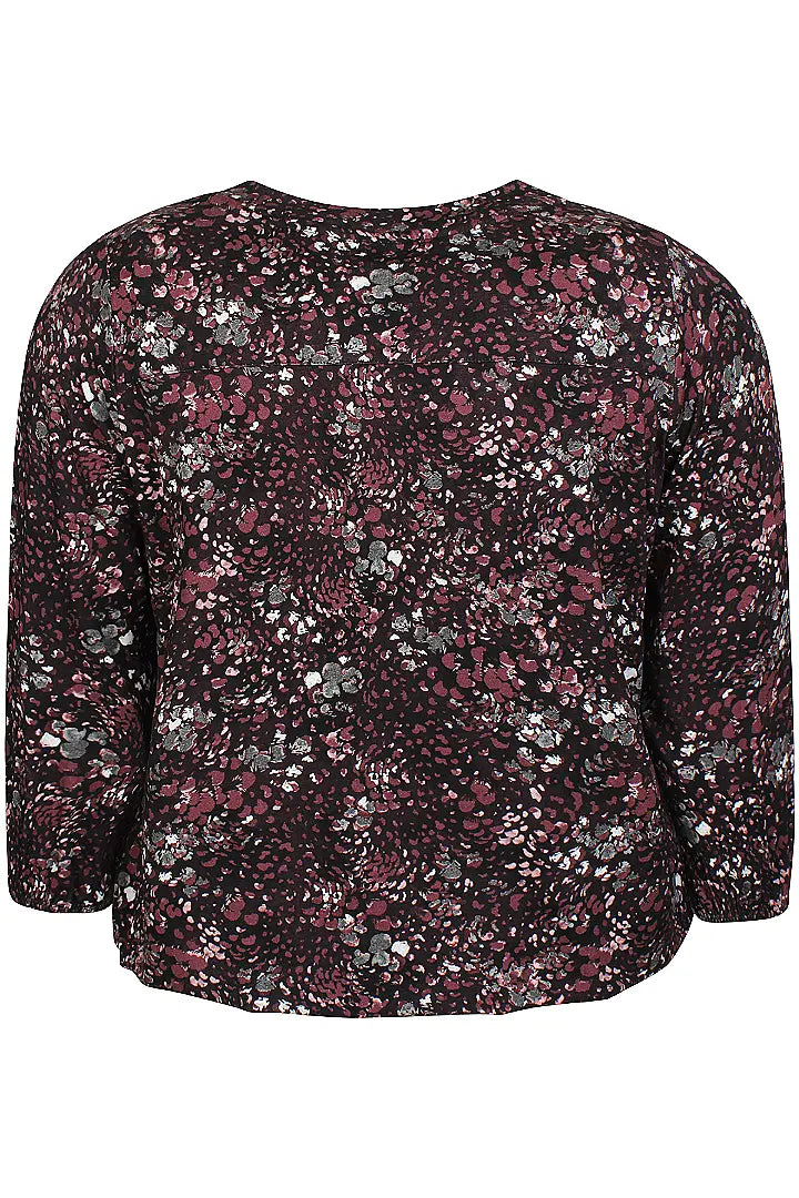 Tässä plus-mitoitetussa Sylva-puserossa on 3/4 hihat ja kuminauha helmassa & hihansuissa. Pienehkö v-kaula-aukko. 95% viskoosi 5% elastaani. Mukava, hiostamaton & ryppyyntymätön materiaali!
